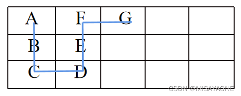 例如:箱子ABCDEFG,空地宽度为3,摆放结果如图: